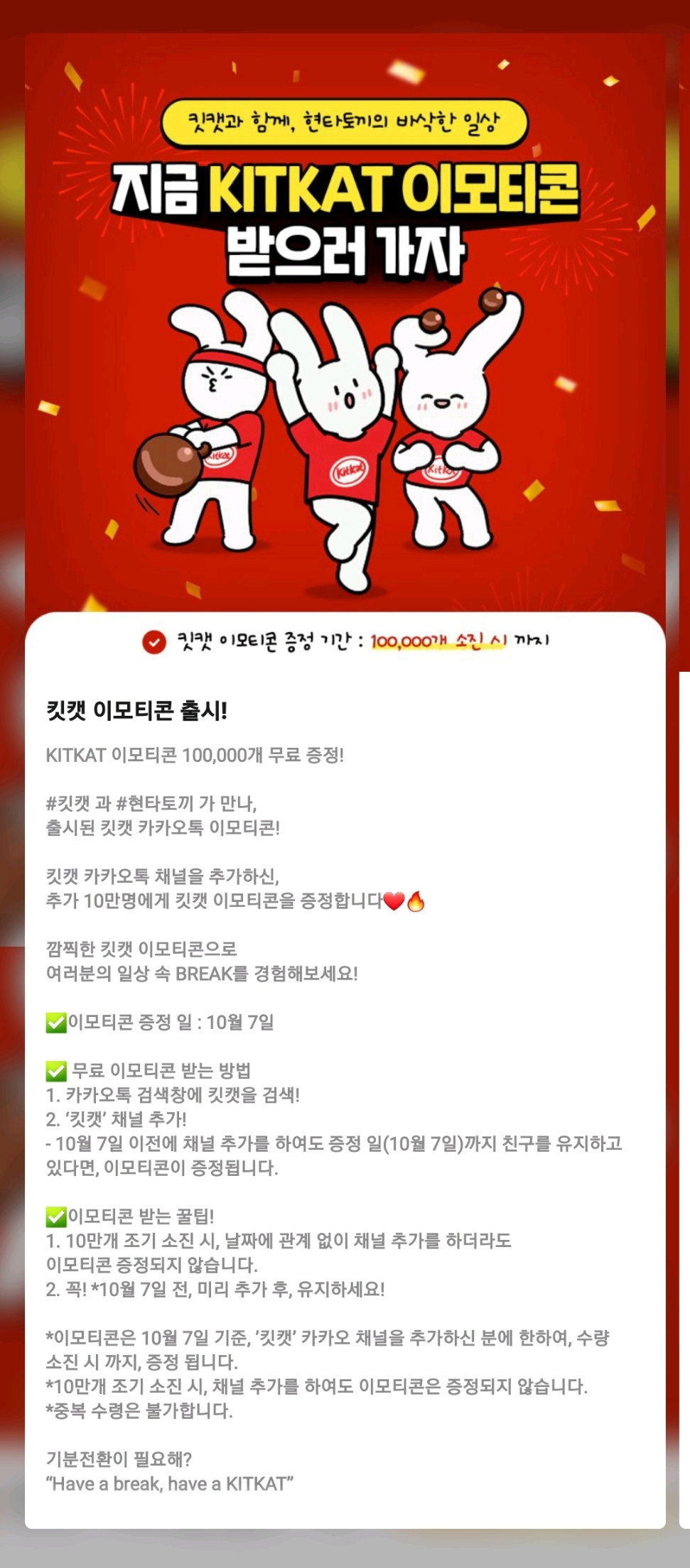 킷캣과 함께 현타토끼의 바삭한 일상 카톡무료이모티콘 다운받는 팁 9/27 ~ 선착순5만 30일 사용 받는 방법...
