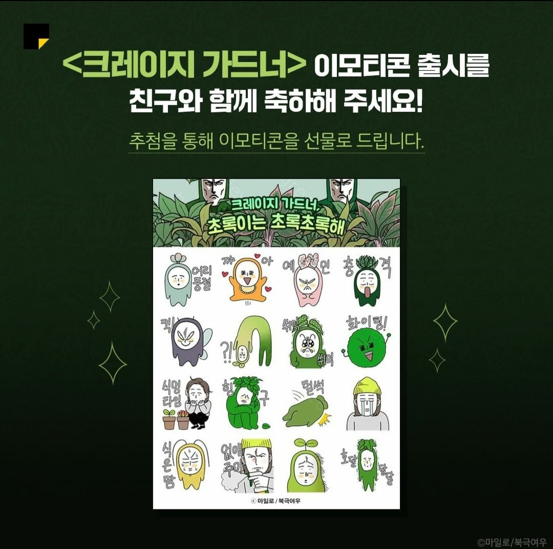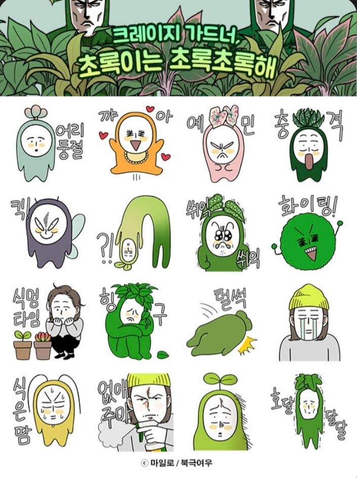 크레이지 가드너 초록이는 초록초록해 카톡 무료이모티콘 다운받는 팁 4/5(화) ~ 11(월) 30일 사용 당발 : ...