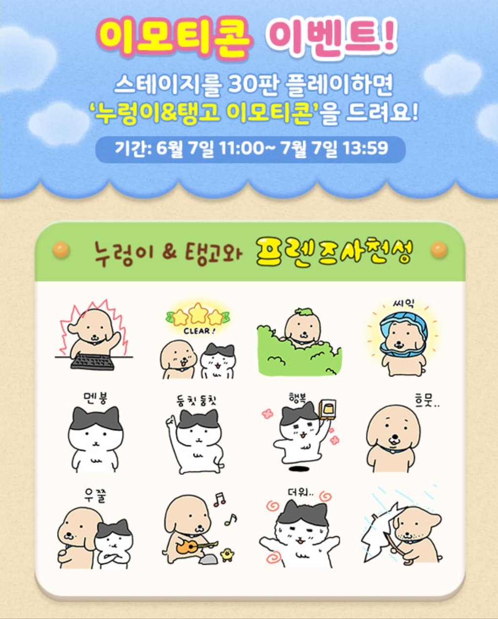 #무료이모티콘 #이모티콘무료다운 #카카오톡이모티콘 #이모티콘이벤트 #공짜이모티콘 #카카오이모티콘 #카톡무료이모티콘 #카카오톡무료이모티콘 #무료이벤트 #이모티콘 #무료증정 #공짜이벤트 #event #emoticon #6월무료이모티콘 #이벤트 #꿀팁 #사전예약 #freeemoticon #카카오게임 #프렌즈사천성 #누렁이 #탱고 #댕댕이 #냥이 #고양이 #멍멍이 #아지 #집사 #야옹이