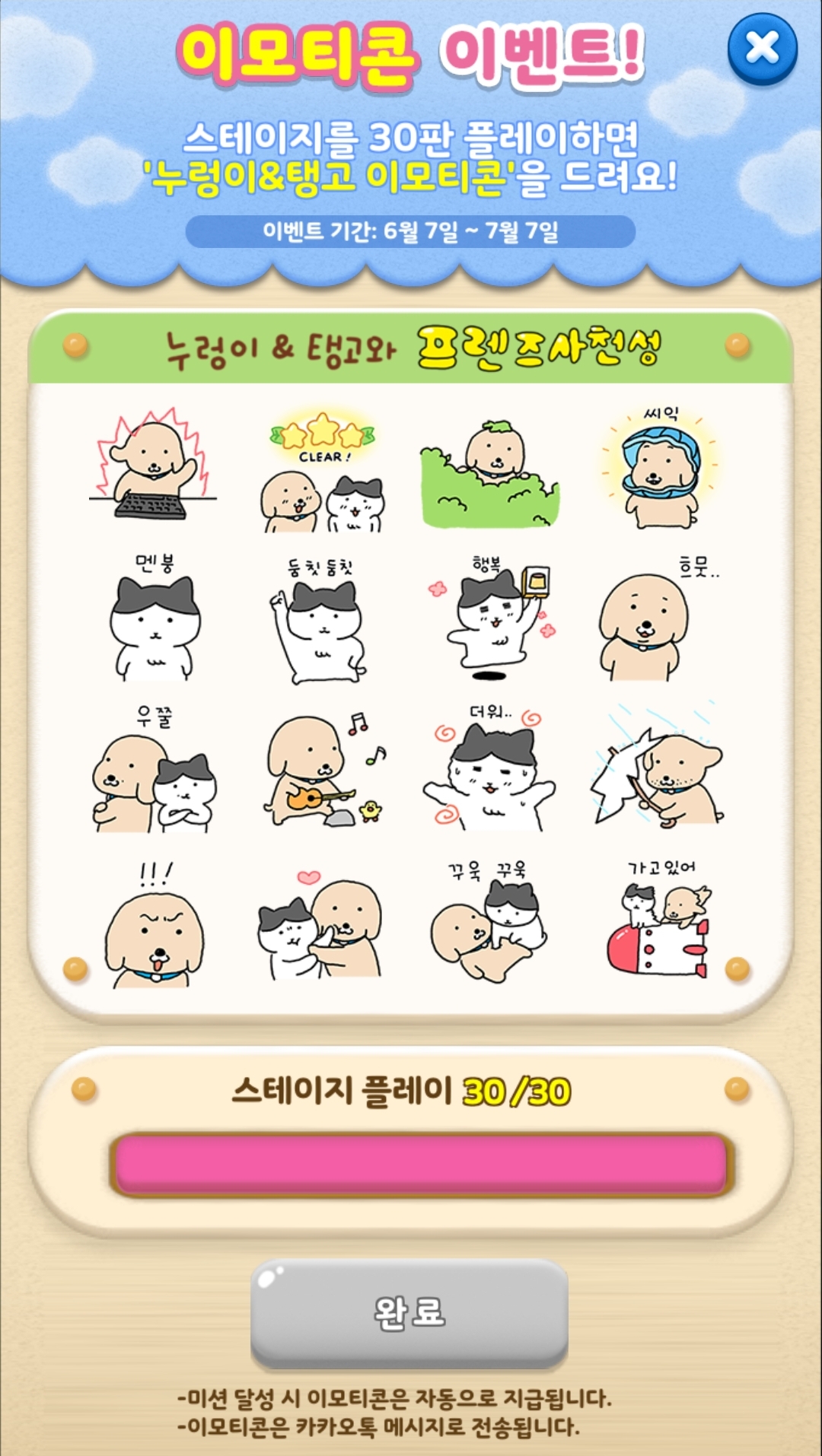 누렁이 & 탱고와 프렌즈사천성 카톡 무료이모티콘 다운받는 팁 (겜안하고 빨리 받는 꿀팁있음‼️) 6/7...