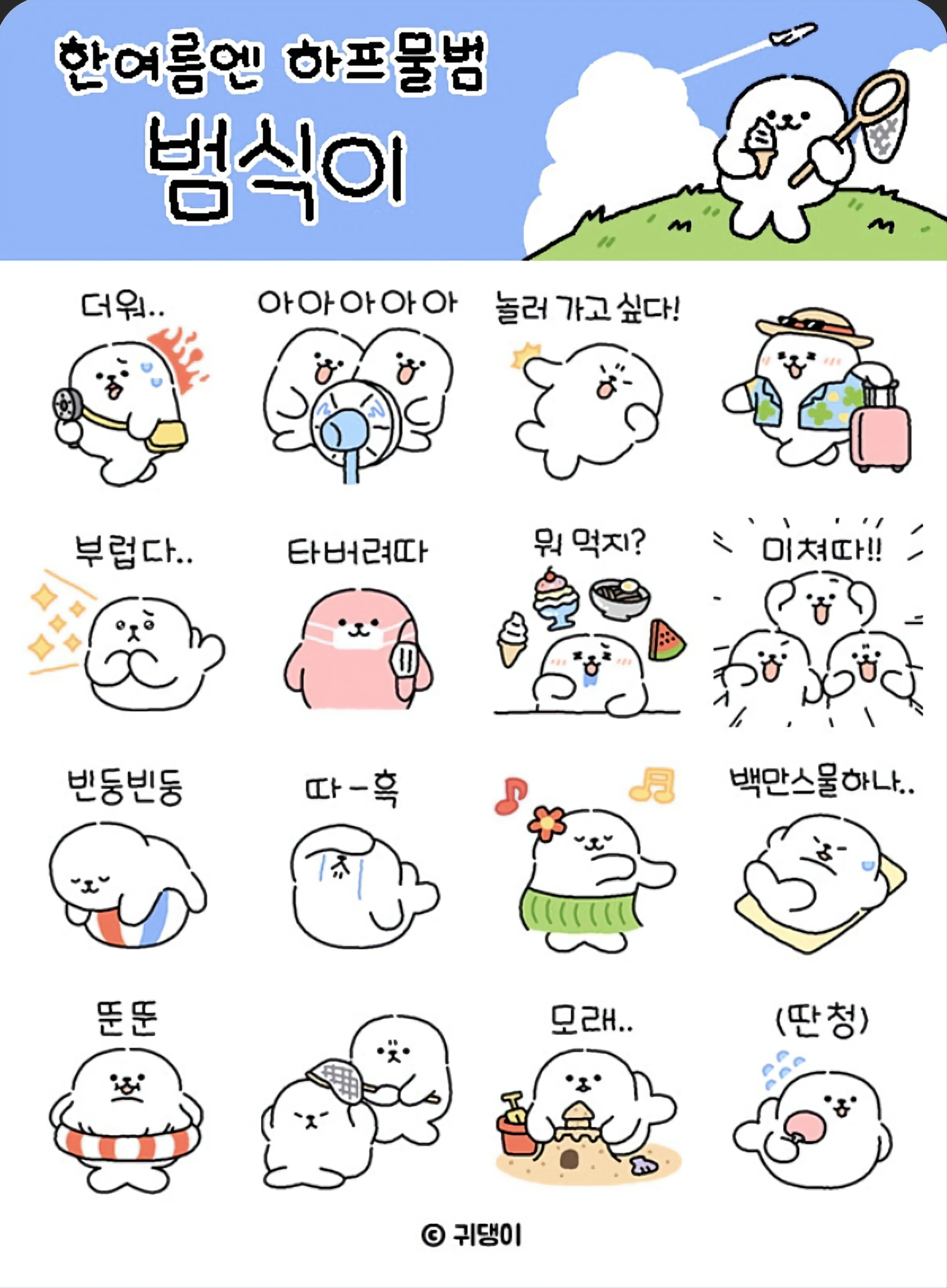 한여름엔 하프물범 범식이 카톡 무료이모티콘 다운받는 팁 7/1 ~ 31 60일 사용 / 1,200명 랜덤 다운방법 : ...
