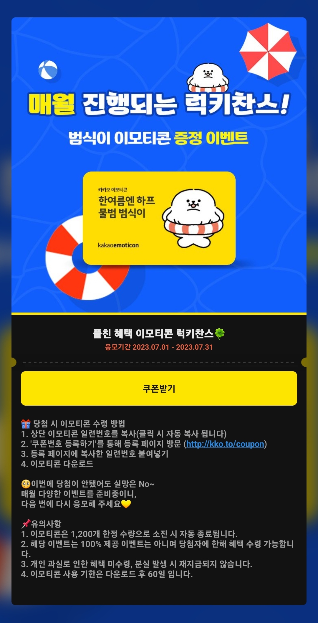 #무료이모티콘 #이모티콘무료다운 #카카오톡이모티콘 #이모티콘이벤트 #공짜이모티콘 #카카오이모티콘 #카톡무료이모티콘 #카카오톡무료이모티콘 #무료이벤트 #이모티콘 #무료증정 #공짜이벤트 #event #emoticon #7월무료이모티콘 #이벤트 #꿀팁 #채널추가 #freeemoticon #카카오톡채널 #물범 #범식이 #이모티콘쿠폰