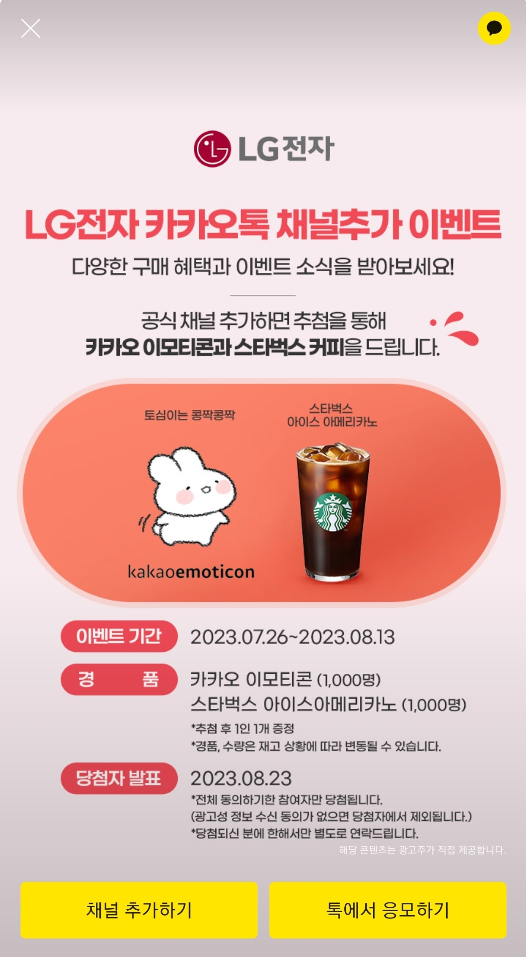 #무료이모티콘 #이모티콘무료다운 #카카오톡이모티콘 #이모티콘이벤트 #공짜이모티콘 #카카오이모티콘 #카톡무료이모티콘 #카카오톡무료이모티콘 #무료이벤트 #이모티콘 #무료증정 #공짜이벤트 #event #emoticon #7월무료이모티콘 #이벤트 #꿀팁 #채널추가 #freeemoticon #카카오톡채널 #LG전자 #토심이 #천명추첨 #스타벅스 #아아 #아이스아메리카노