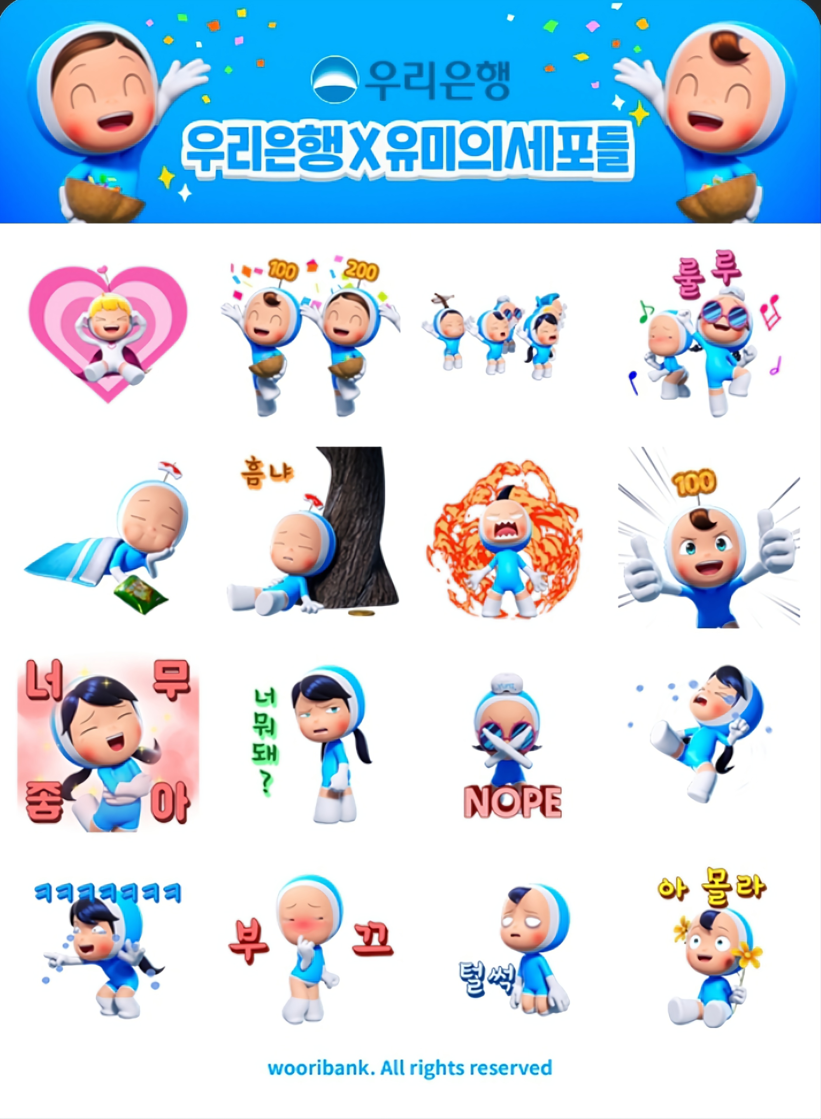 우리은행 X 유미의 세포들 카톡 무료이모티콘 다운받는 팁 이벤트 기간 : 8/7(월) ~ 15(화) 사용기간 : 30...