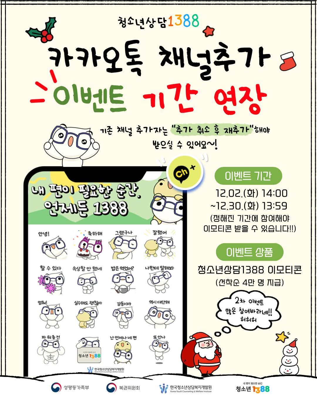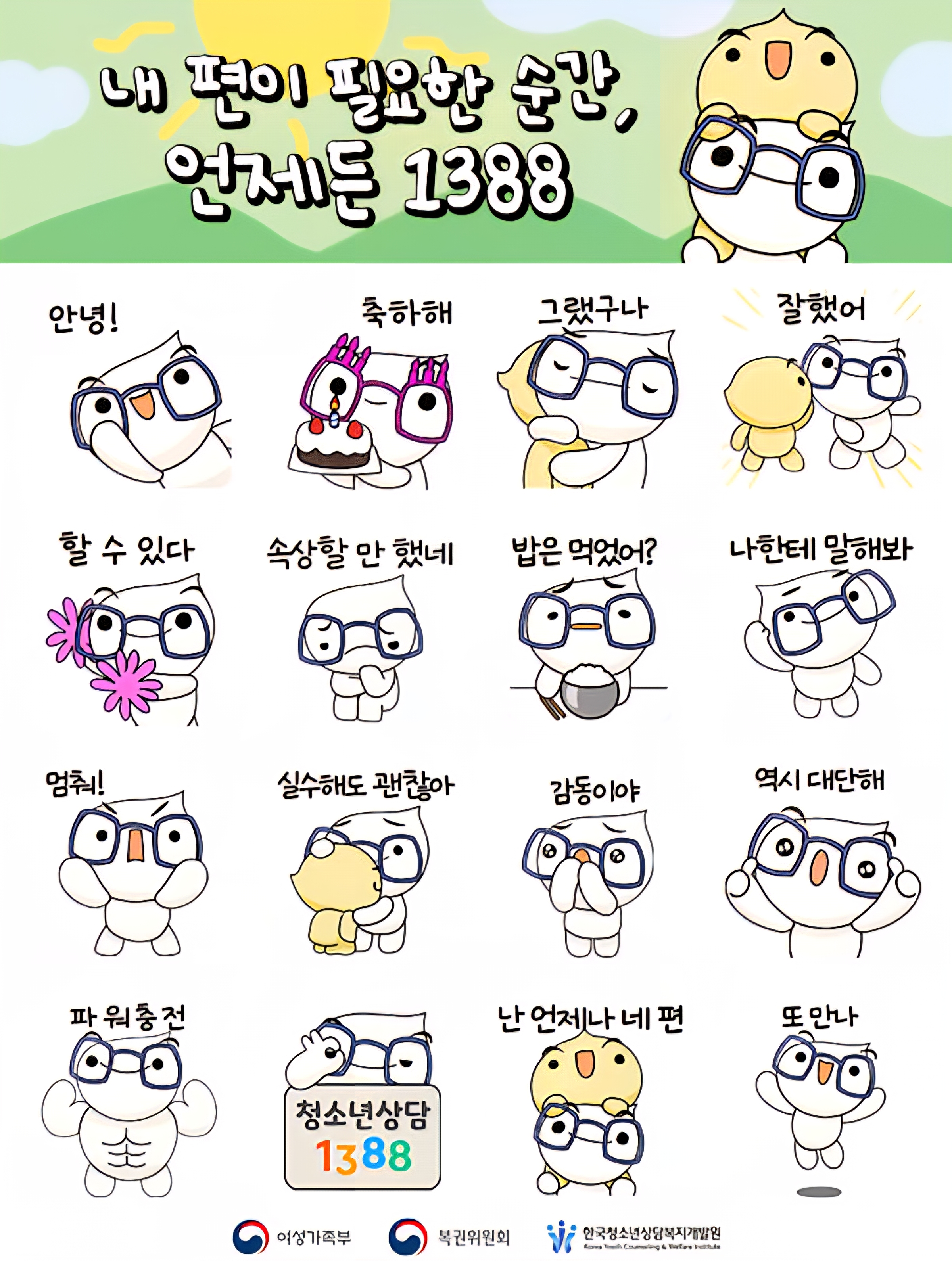 내 편이 필요한 순간, 언제든 1388 카카오톡 무료이모티콘 다운받는 팁 12/2(화) ~ 선착순 4만 30일 사용 ...
