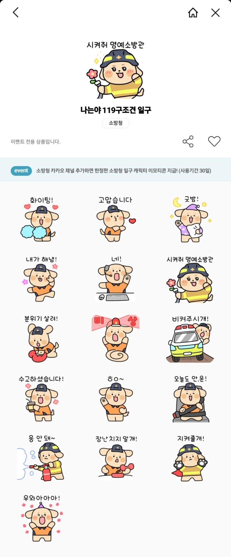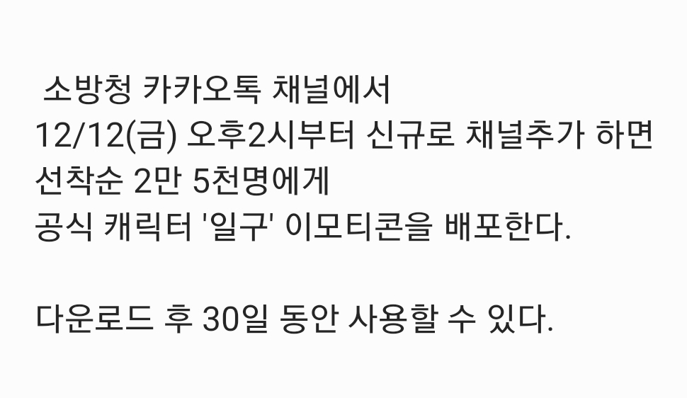 #무료이모티콘 #이모티콘무료다운 #이모티콘이벤트 #공짜이모티콘 #카톡무료이모티콘 #카카오톡무료이모티콘 #무료이벤트 #공짜이벤트 #12월무료이모티콘 #채널추가 #카카오톡채널 #소방청 #소방구조견 #119구조견 #일구 #강아지 #아지 #댕댕이 #멍멍이