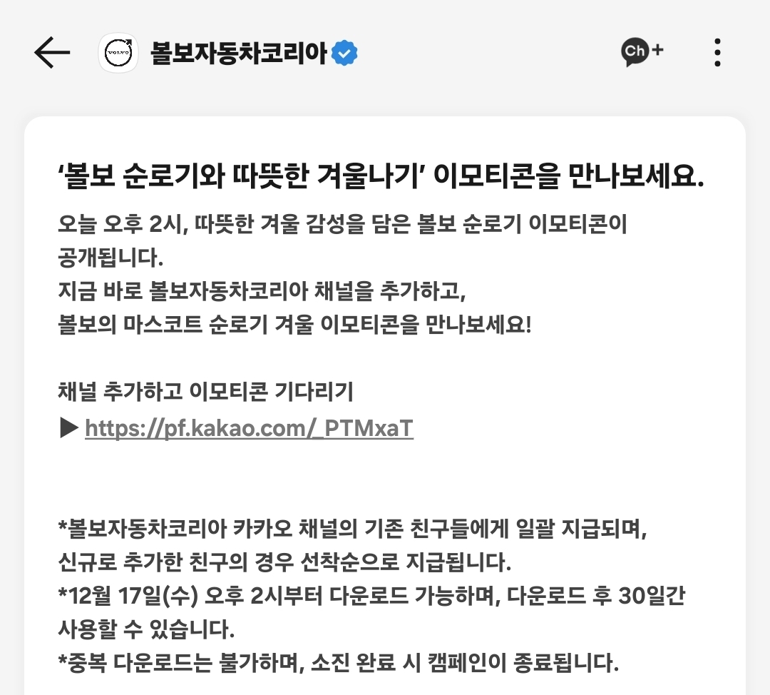#무료이모티콘 #이모티콘무료다운 #이모티콘이벤트 #공짜이모티콘 #카톡무료이모티콘 #카카오톡무료이모티콘 #무료이벤트 #공짜이벤트 #12월무료이모티콘 #채널추가 #카카오톡채널 #볼보자동차코리아 #순로기 #볼보순로기