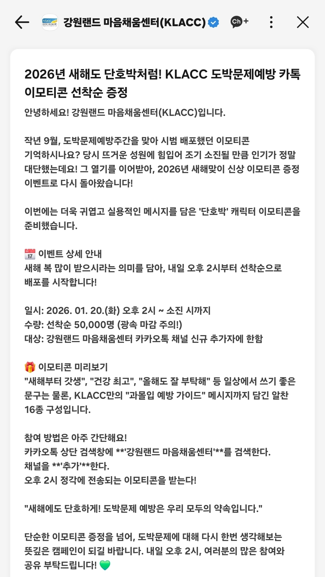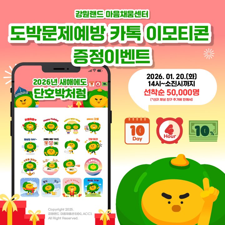 #무료이모티콘 #무료이벤트 #채널추가 #단호박 #마음체움센터 #강원랜드