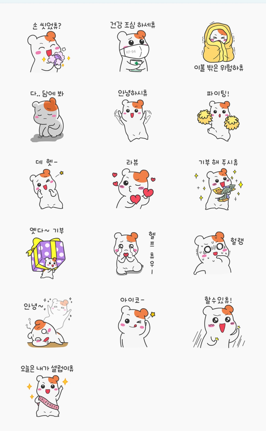 귀여운 에비츄 이모티콘 16종을 이미지로 미리 보시고 아래로 내려서 득템하세요.